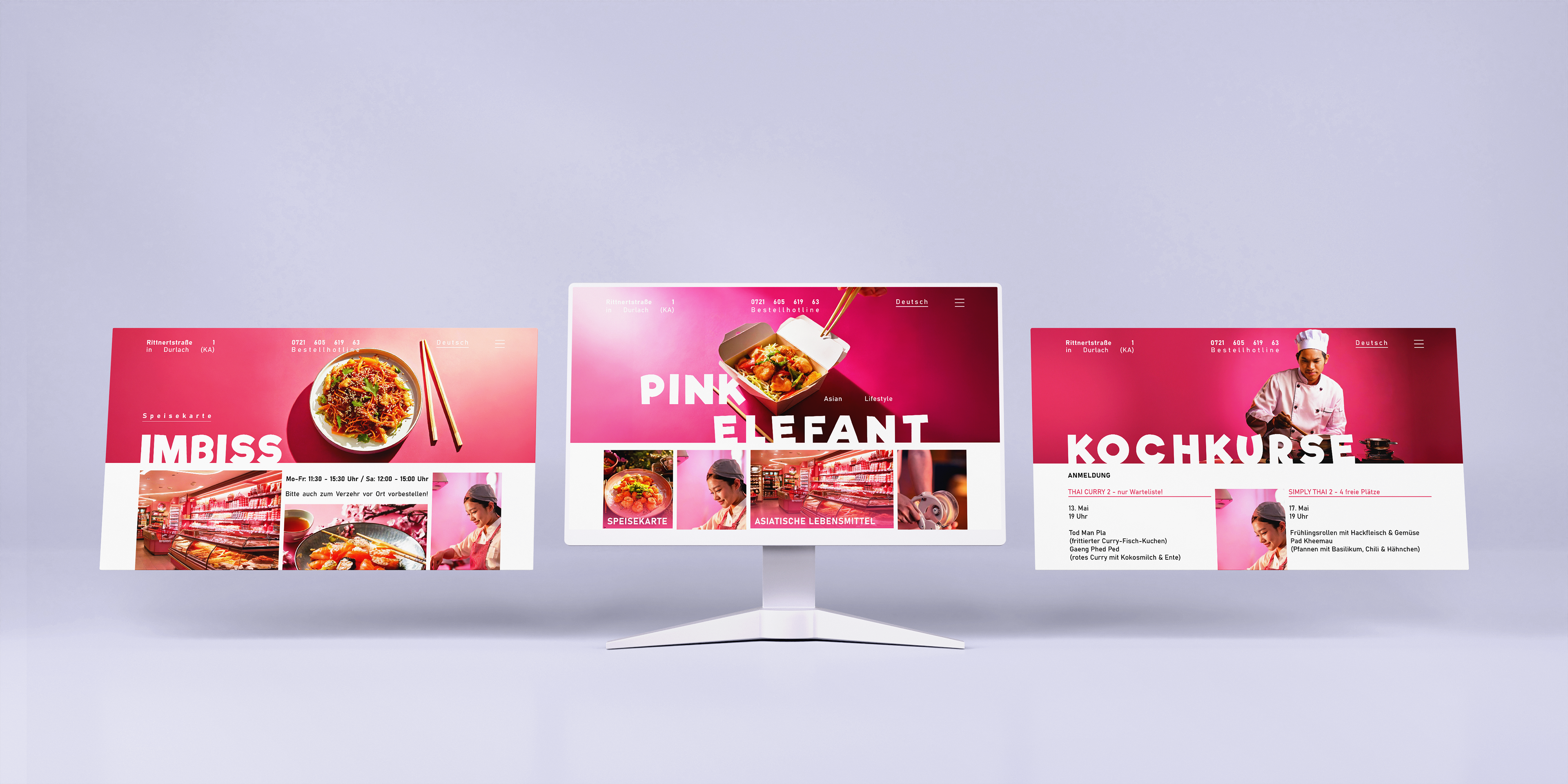 Das Redesign der Webseite von Pink Elefant zielt darauf ab, das lebendige Wesen des Ladens und seine authentische Verbindung zur thailändischen Kultur einzufangen. Die Farbe Pink betont sowohl die fröhliche, energiegeladene Atmosphäre des Geschäfts als auch den Namen selbst.