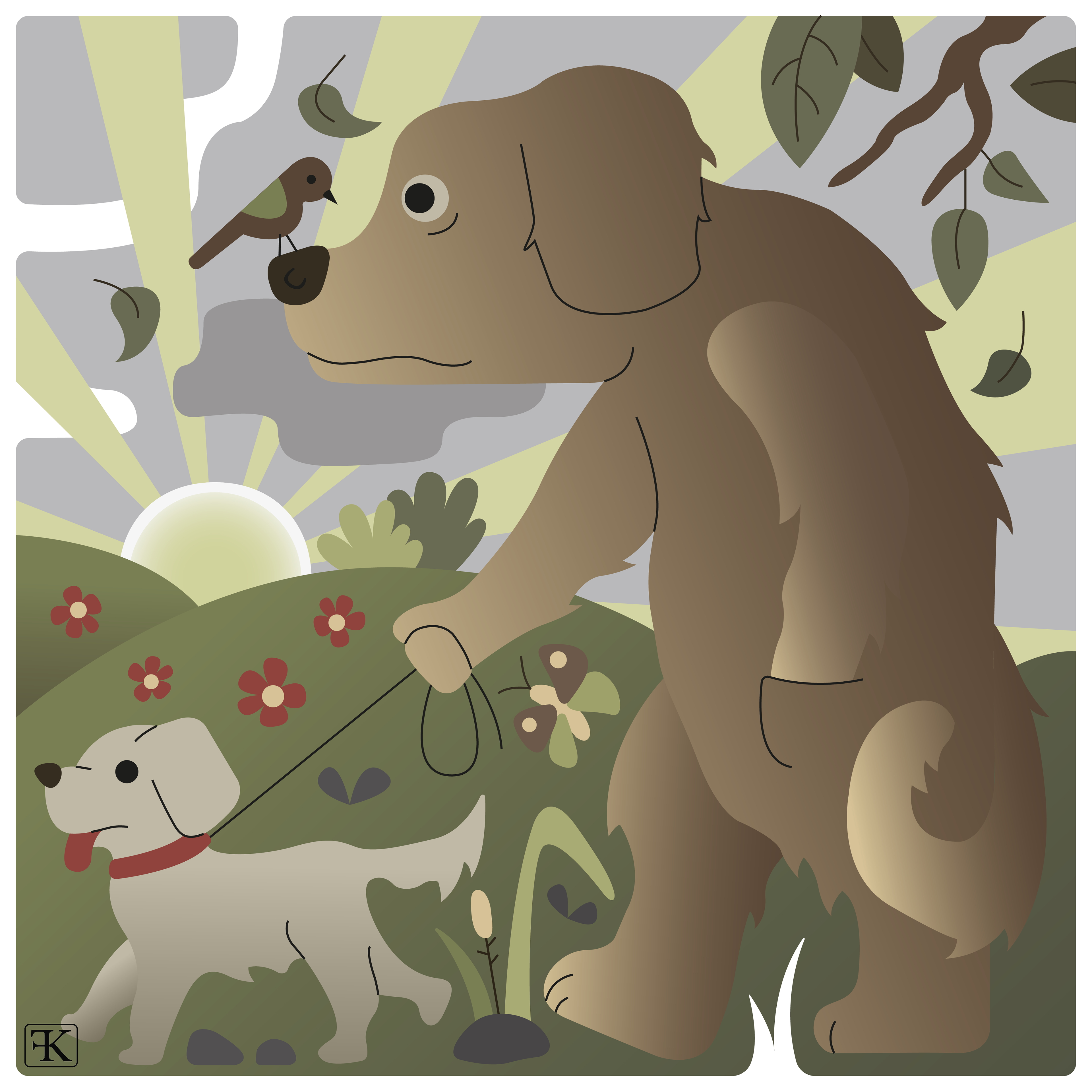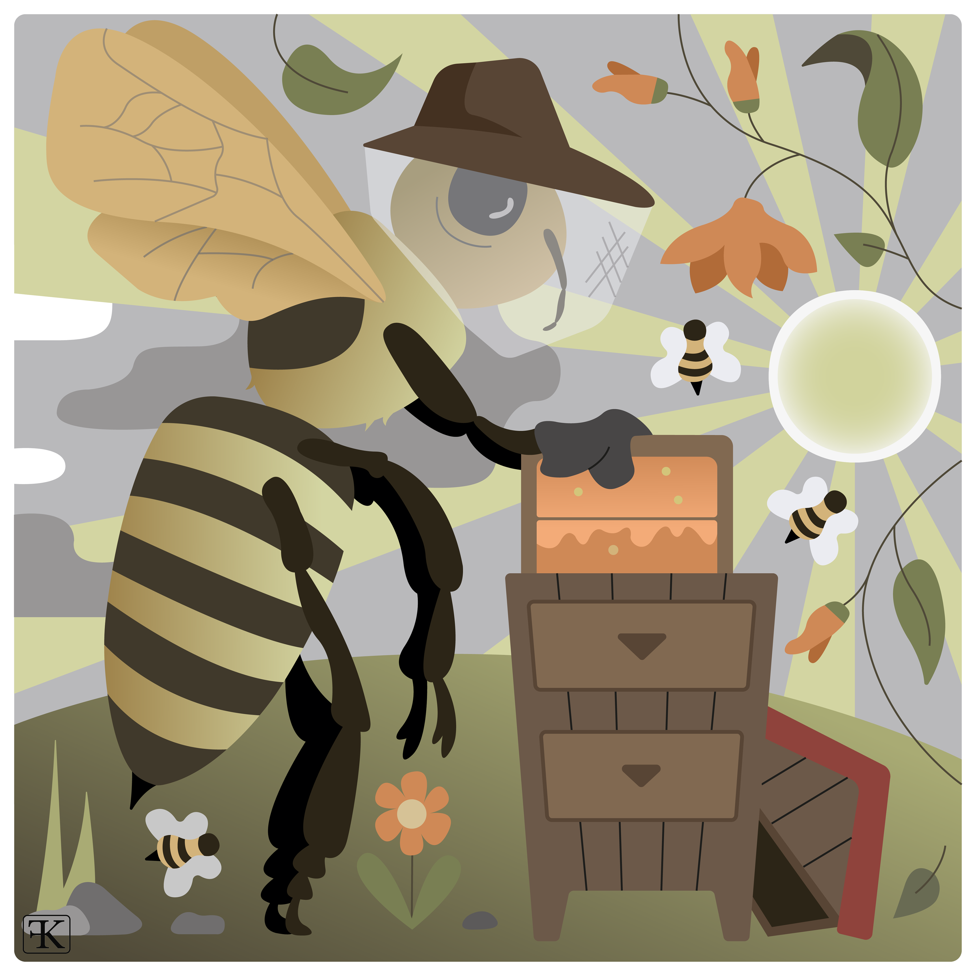 Gleichzeitig war diese Serie auch einfach ein kleiner Spaß. Ein spielerischer Umgang mit der skurrilen Vorstellung eines Fisches, der angeln geht: Was erhofft er sich, zu fangen? Und dann habe ich die Idee weitergesponnen mit einem Hund, der einen anderen Hund spazieren führt, und einer Biene, die als Imkerin fleißig arbeitet.