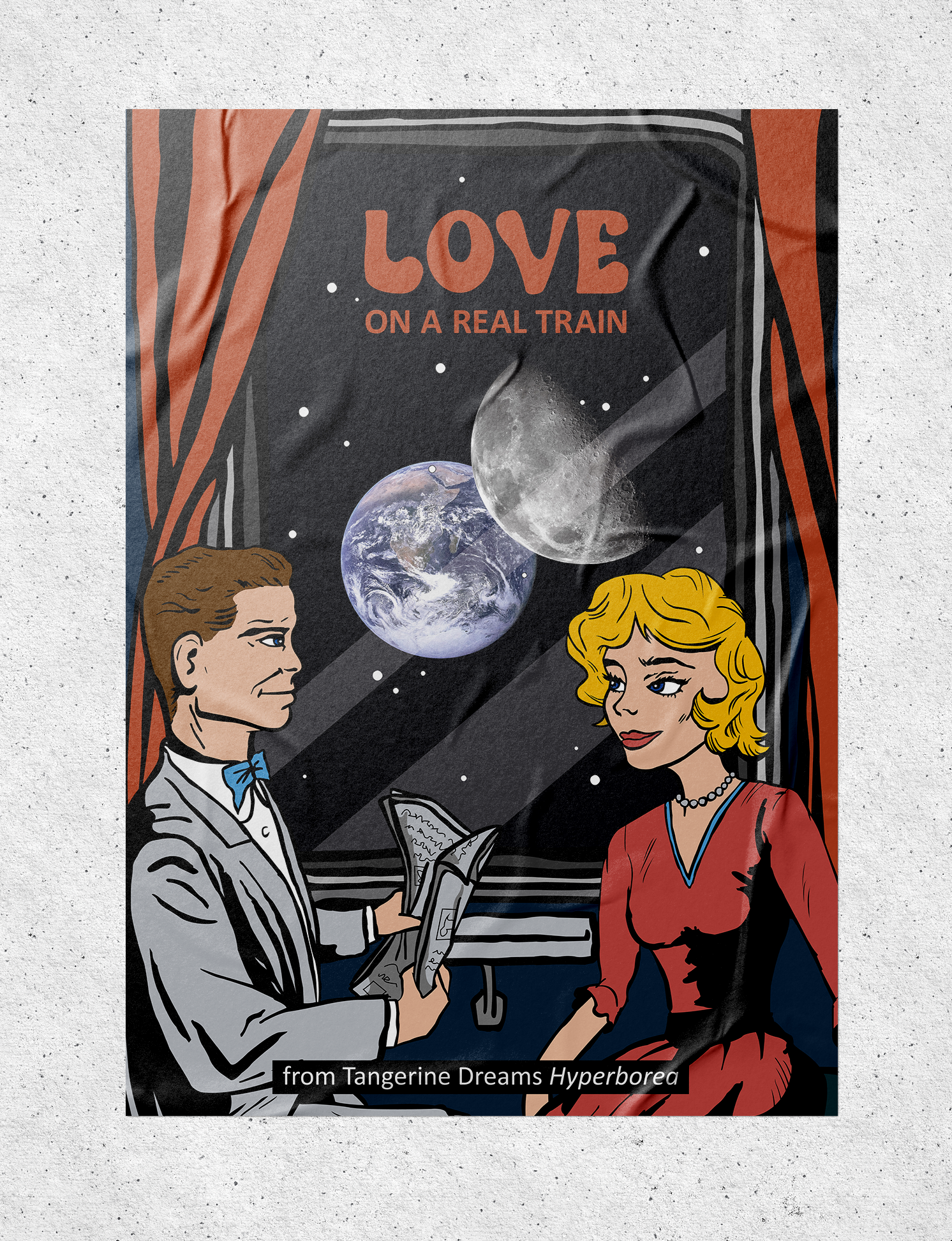 Als Einstiegsprojekt in meinen Studiengang Kommunikationsdesign habe ich dieses Poster zu einem meiner Lieblingsstücke der Band gestaltet: Love on a Real Train aus dem Album Hyperborea. Schon der Titel allein lässt den Hörer Szenarien erträumen, doch zusammen mit dem Klang entfaltet sich eine ganze kosmische Welt.